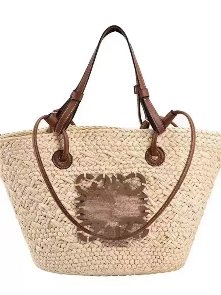 Large Capacity Straw Woven Picnic Basket Tote Bag Rural Style Single Shoulder Bag Beach Vacation Sandwich Bag Neutral Minimalist