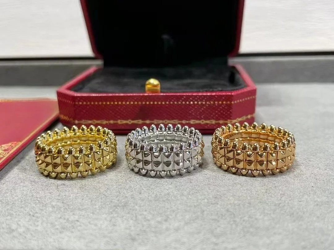 High Quality Bullet Rivet Wide Double Ring For Women Fashion Classic Luxury Brand Jewelry Fine Party Gifts